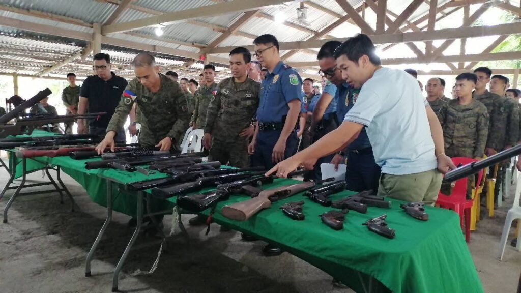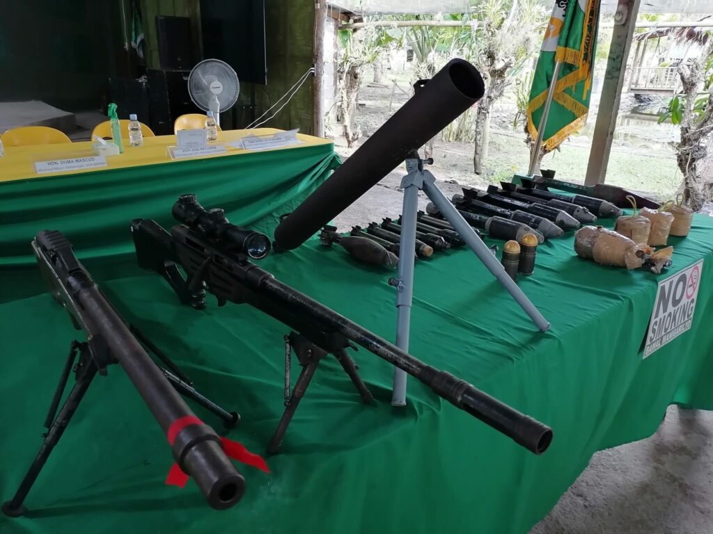 Isinuko ang iba’t ibang kalibre ng baril at pampasabog mula sa mga bayan ng Pahamudin, Nabalawag, at Kadayangan sa Barangay Salunayan, Midsayap, North Cotabato nito lamang Agosto 21, 2025.