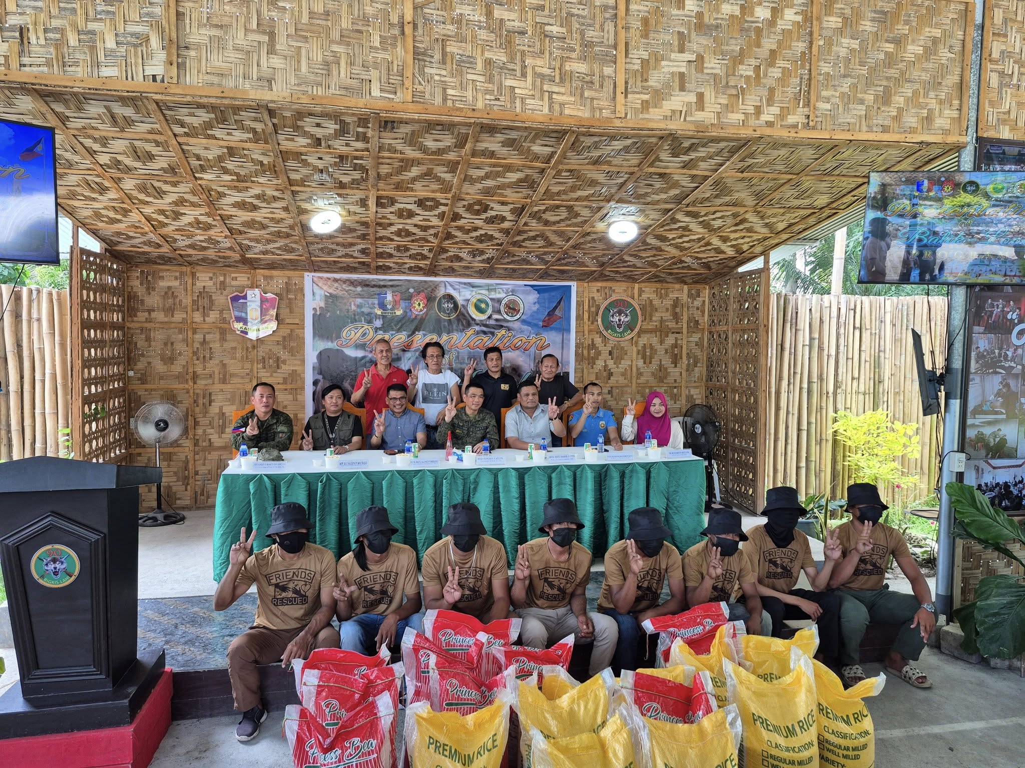 Kasabay ng kanilang pagbabalik-loob ay ang pagsuko ng kanilang matataas na calibre ng armas kabilang ang Improvised 7.62mm; Improvised 81mm mortar; Shotgun; RPG; Improvised 60mm mortar; Uzi KG45; Uzi KG45; Improvise M79, mga bala at magazine.