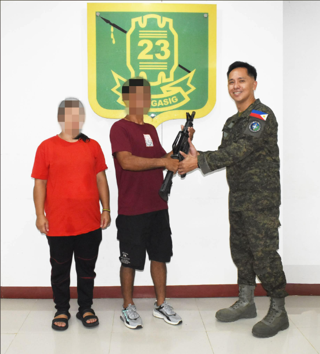 Ni-surrender ang tulo ka miyembro sa New People’s Army (NPA) sa mga otoridad atol sa pagsugat sa Pasko, Disyembre 24, 2025 sa Buenavista, Agusan del Norte.