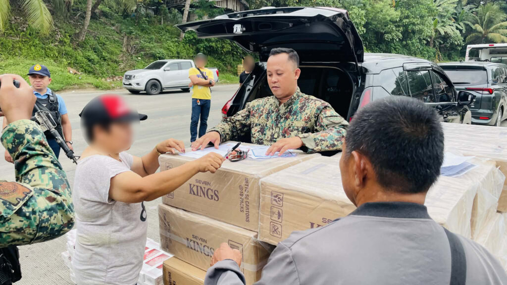 Nasakmit ang ₱3,488,000.00 kantidad sa puslit nga yosi sa gihimo nga checkpoint operation sa PNP sa Barangay Omonay, Damulog, Bukidnon niadtong Martes, Enero 13, 2026.