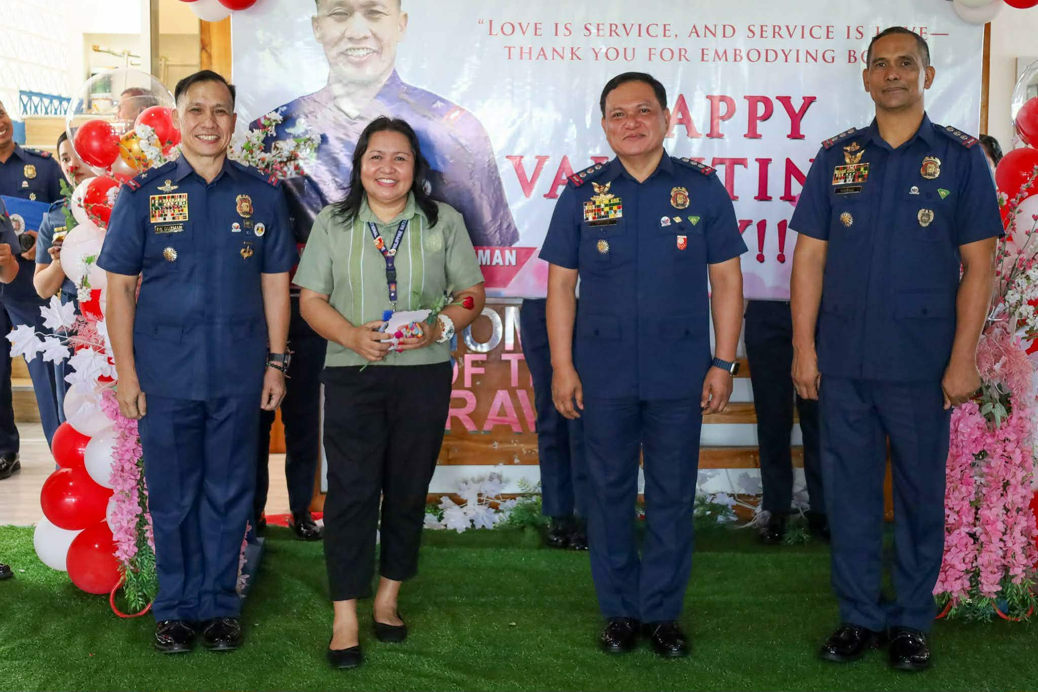 Nangunay sa paghatag sa rose ug chocolate sa mga kababayen-an nga mga pulis ug Non-Uniformed Personnel (NUP) si Police Brigadier General Jaysen De Guzman para sa pagsaulog sa Valentine’s Day 2026 sa PRO BAR Headquarters, Camp BGen Salipada K Pendatun, Parang, Maguindanao del Norte adtong Biyernes, Pebrero 13, 2026.