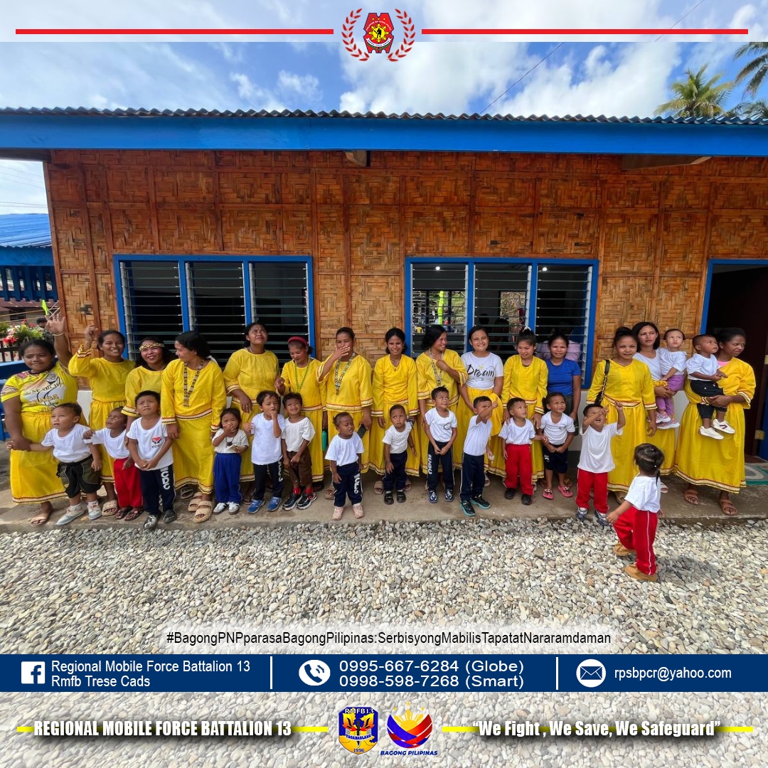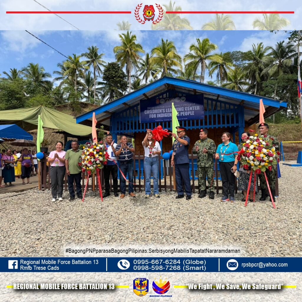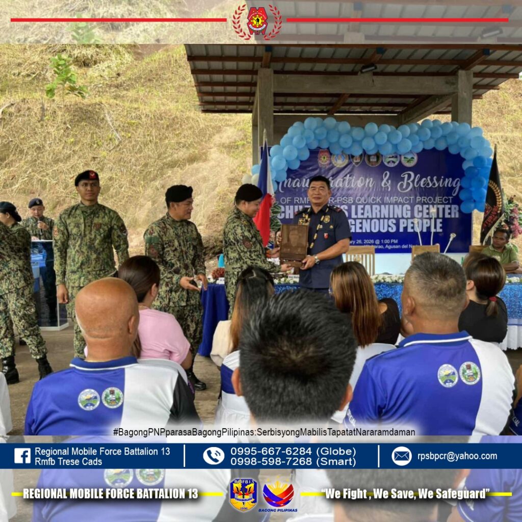 Gilunsad sa Regional Mobile Force Battalion 13 ang Children’s Learning Center for Indigenous People isip kabahin sa Quick Impact Project sa Purok 5, Barangay Canaway, Kitcharao, Agusan del Norte niadtong Pebrero 26, 2026.