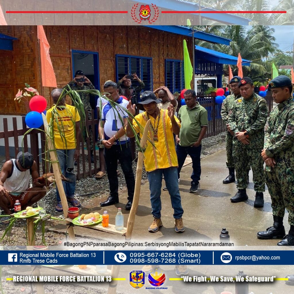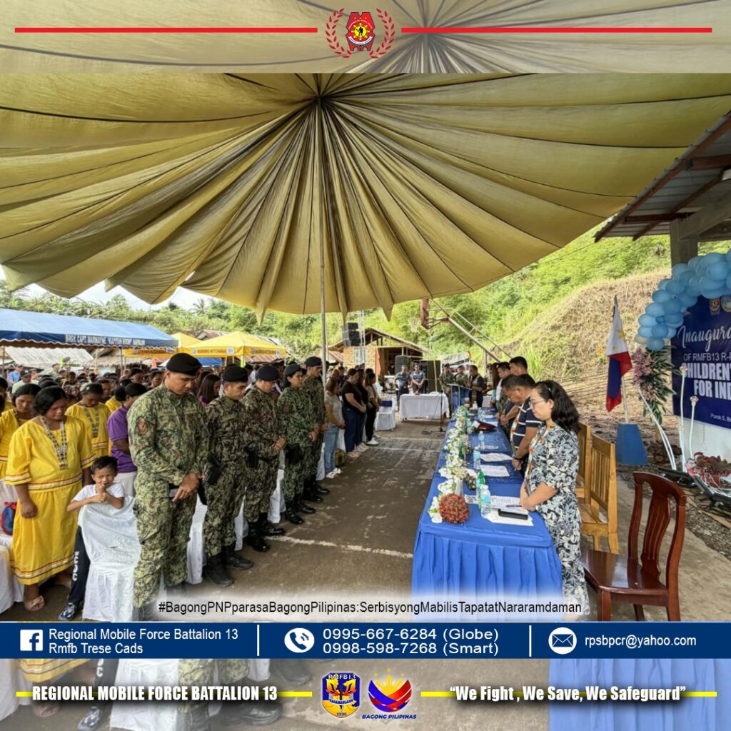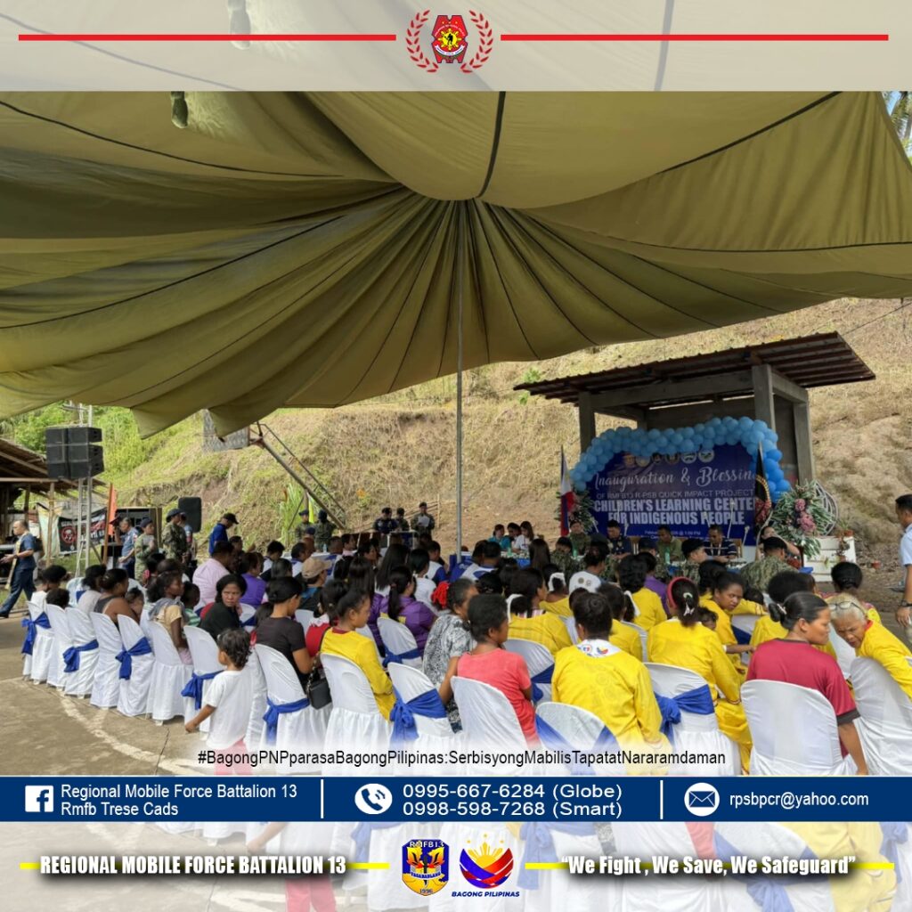 Gilunsad sa Regional Mobile Force Battalion 13 ang Children’s Learning Center for Indigenous People isip kabahin sa Quick Impact Project sa Purok 5, Barangay Canaway, Kitcharao, Agusan del Norte niadtong Pebrero 26, 2026.