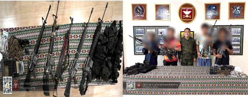 Ni-surrender ang upat ka miyembro sa New People’s Army (NPA) sa mga otoridad sa opisina sa 26th Infantry Battalion sa Talacogon, Agusan del Sur adtong Lunes, Marso 2, 2026.