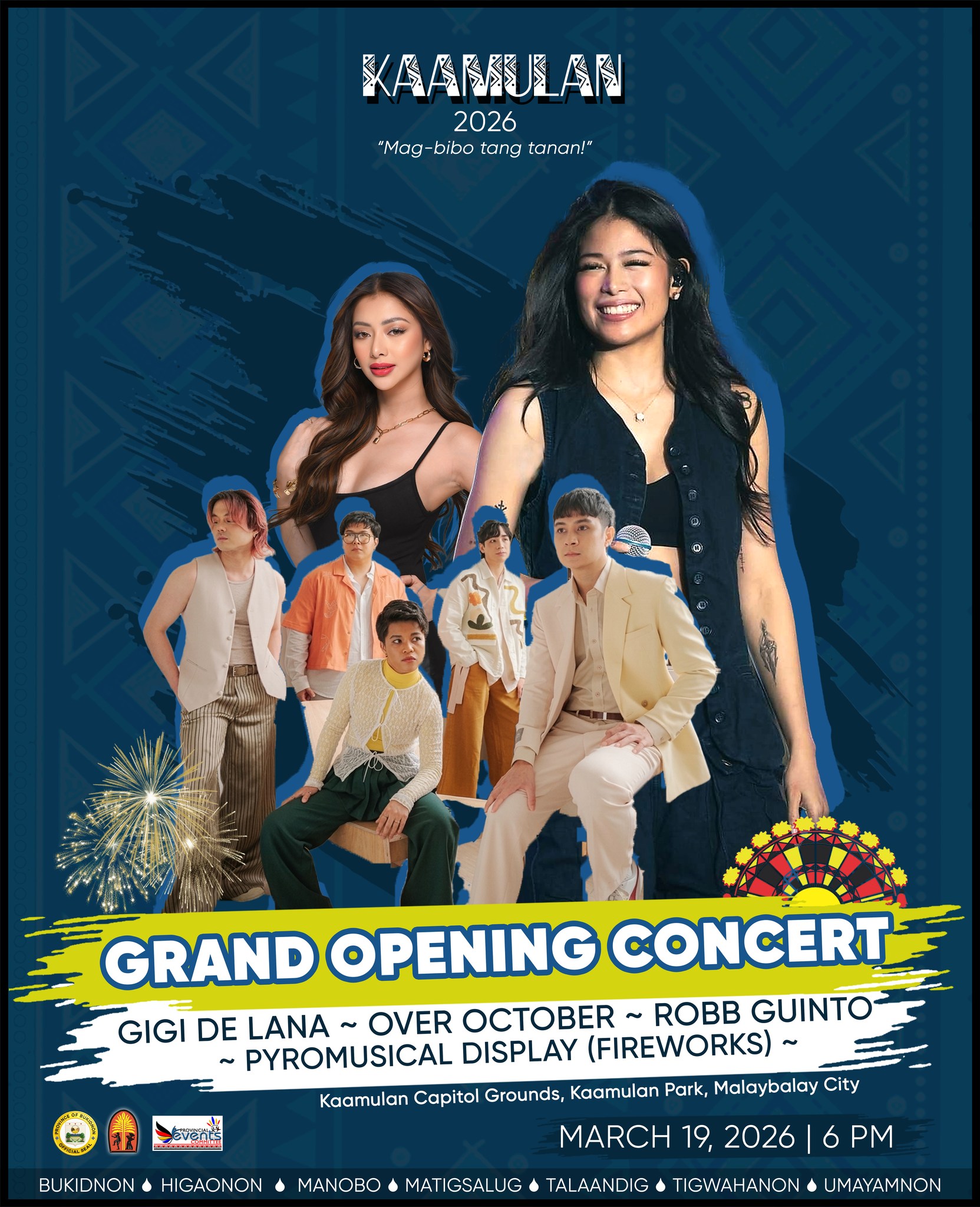 Malipayon ug puno sa kolor ang pagsugod sa Kaamulan Festival 2026 pinaagi sa usa ka dako ug makapahinam nga Grand Opening Concert nga ipahigayon sa Kaamulan Capitol Grounds, Kaamulan Park, Malaybalay City, Bukidnon karung umaanot nga Marso 19, 2026.