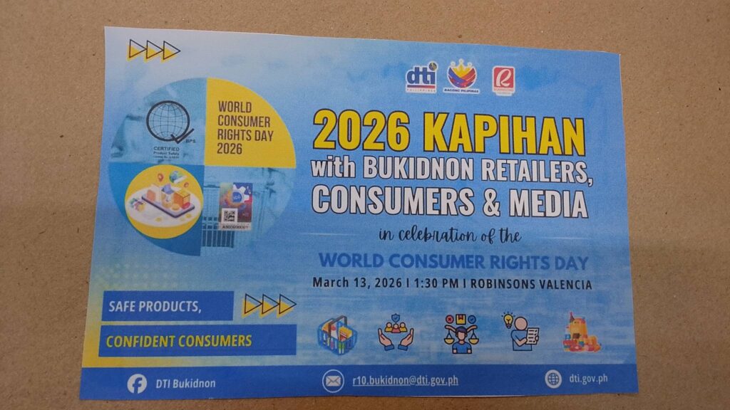 Gipahigayon ug gisalmutan sa mga negosyante ug konsumers gikan sa nagkalain-laing lungsod sa Bukidnon ang gipahigayon nga Kapihan sa Department of Trade and Industry (DTI) adtong hapon sa Biyernes, Marso 13, 2026 sa Robinsons Mall, Valencia City, Bukidnon.