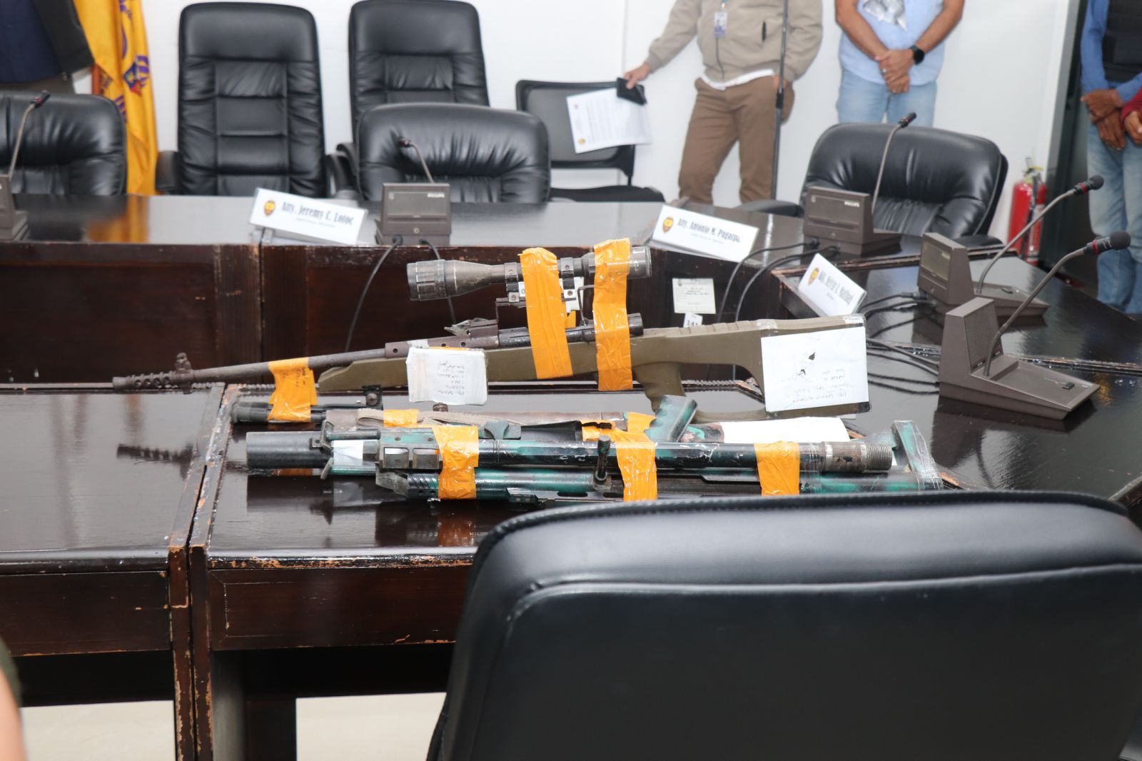 Gisurrender ang usa ka Barrett Rifle, M79 Grenade Launcher, M203 Grenade Launcher Tube, Mosin Rifle ug duha ka bala sa 7.62mm nga buhing bala.