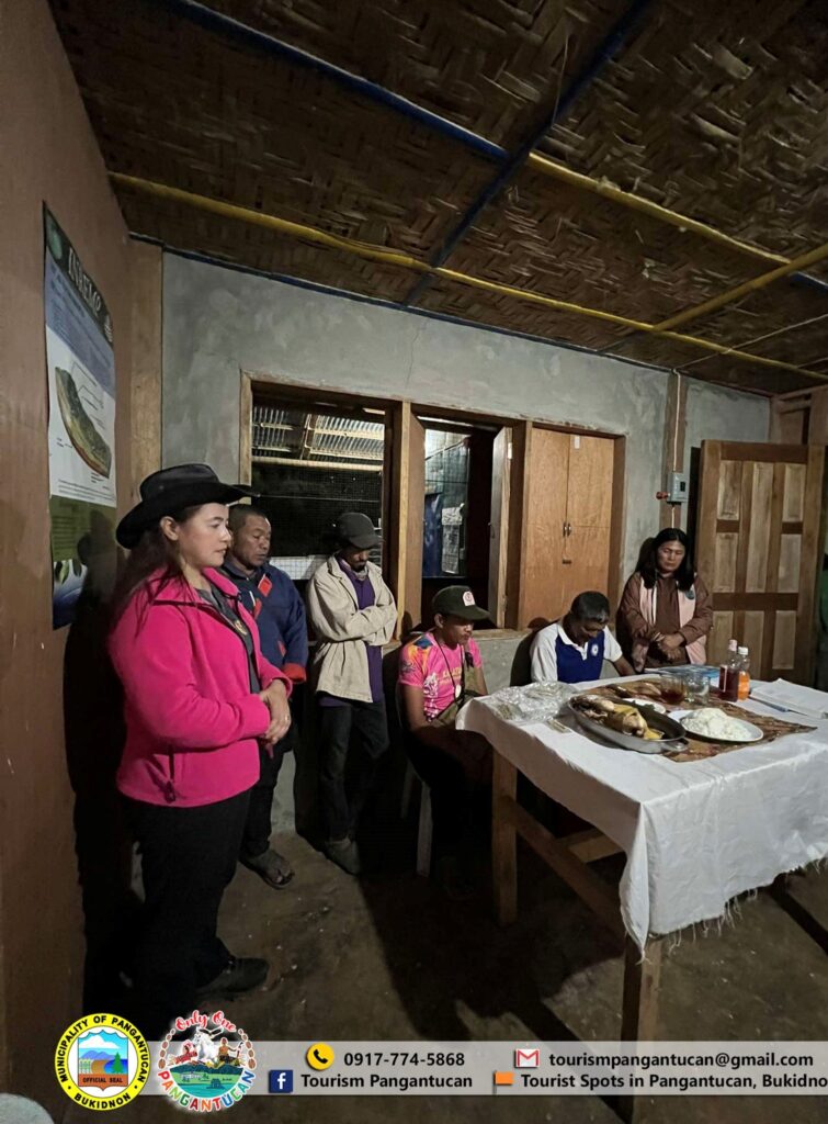 Tinanggap ni Tourism Officer, Ms. Lea M. Apal, ang mga panauhin at ipinaliwanag ang mga patakarang pangkalikasan para sa Mt. Kalatungan Range Natural Park, upang matiyak ang pagsunod sa seremonya ng ritwal sa Tulugan, Barangay Portulin.