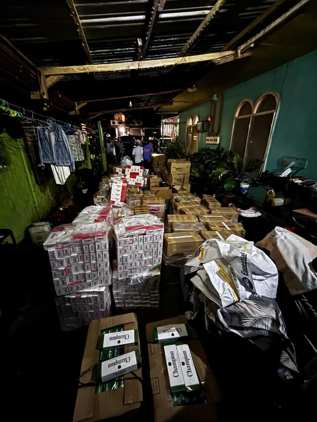 Narekober ng pulisya ang humigit-kumulang 87 master cases ng iba’t ibang puslit na yosi na tinatayang may halagang P4,985,100.00.